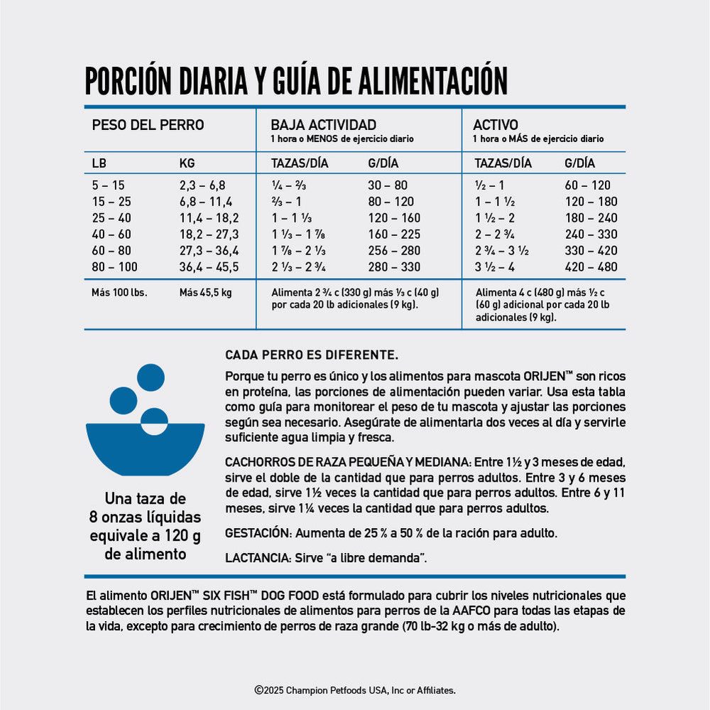 Alimento de la marca Orijen, Orijen Six Fish en presentación de 4.5lb, está diseñado para perros adultos de todas las razas. Este alimento se enfoca en proporcionar una nutrición biológicamente apropiada, utilizando una variedad de pescados frescos y crudos capturados en su entorno natural como única fuente de proteína animal. Su fórmula es excepcionalmente rica en ácidos grasos esenciales, lo que favorece una piel saludable y un pelaje brillante, a la vez que apoya la salud digestiva y cardiovascular. Es la opción ideal y conveniente para perros con paladares exigentes o sensibilidades alimentarias, asegurando que su mascota reciba una nutrición premium y equilibrada.